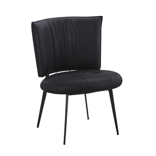 SE-499 Indoor Black Metal Chair with Padded Vinyl Seat and Curved Back This modern vinyl dining chair features plush segmented