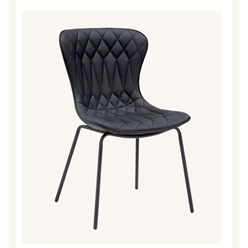 Indoor Modern Black Chair with Diamond Pattern and Black Metal Legs
