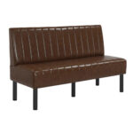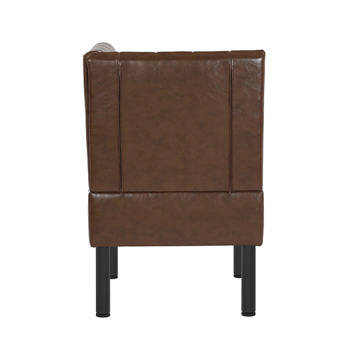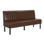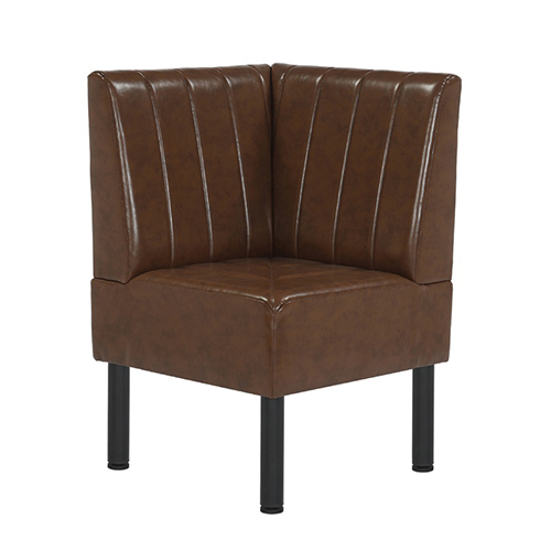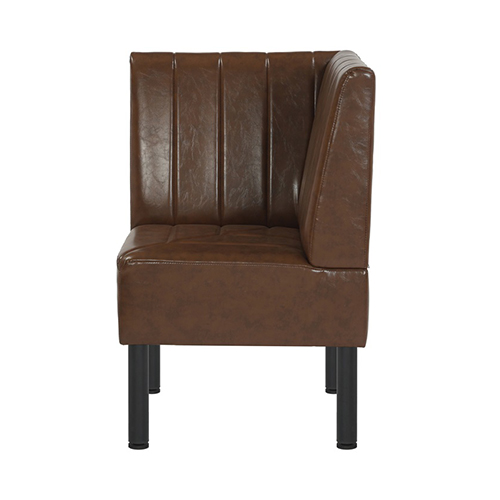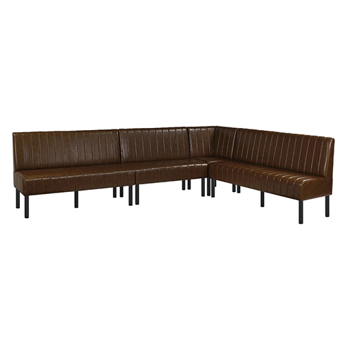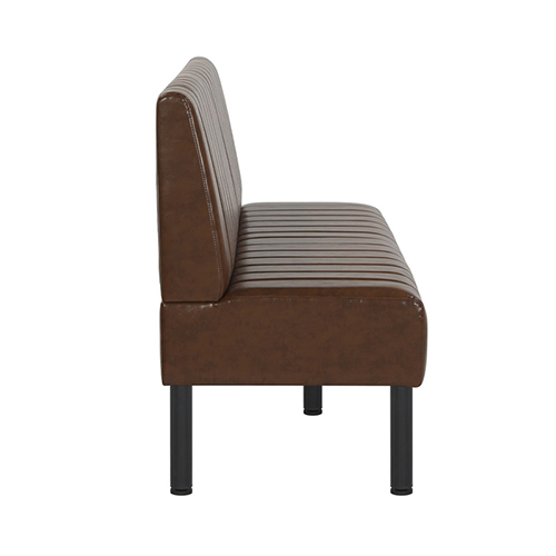 Bring a warm, refined look to any restaurant or commercial dining space with this Brown Vertical Channel Upholstered Single Booth. Designed for durability and style, it features a rich brown vinyl finish with vertical channel tufting on both the seat and back, offering a timeless aesthetic with easy-to-clean practicality. The sturdy black metal legs provide excellent stability and long-lasting performance, making it ideal for high-traffic hospitality environments. Available in multiple lengths as well as a corner section. This booth integrates seamlessly into various layout designs whether creating cozy two-seaters, long banquette runs, or smooth corner transitions. Comfortable, durable, and versatile, it’s a perfect solution for restaurants, cafés, lounges, and other commercial spaces.