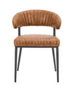 Camel Brown Vinyl Upholstered Dining Chair with Ribbed Cushioning and Black Powder-Coated Metal Frame