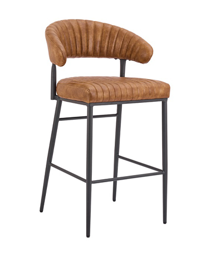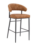 This camel brown vinyl upholstered dining chair blends modern comfort with vintage-inspired character, featuring ribbed cushioning and a curved wraparound backrest that enhances both support and style. The black powder-coated metal frame adds strength, stability, and a refined industrial touch, making it suitable for high-traffic use in restaurants, cafés, bars, and hospitality venues. Available in both standard and bar height, this versatile design delivers uniform aesthetics across different seating areas, offering durability, easy maintenance, and elevated visual appeal for any commercial space. Furnishings a restaurant is what ARTeFAC specializes from year 2004.
