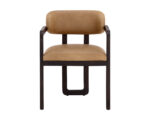 SR-111583 Contemporary Camel Faux Leather Armchair with Dark Brown Solid Oak Frame and Three-Legged Design