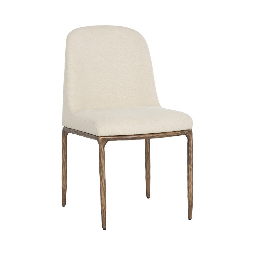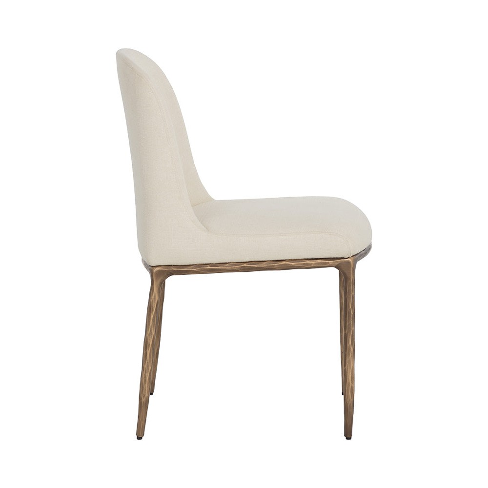 SR-112801 Contemporary Dining Chair in Rust Fabric Seat and Back with Hammered Antique Brass Steel Frame