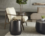 The Contemporary Drum-Style Side Table in Antique Gold Finish brings a refined modern touch to restaurants, lounges, and other commercial spaces. Its hand-etched and hand-hammered top highlights exceptional craftsmanship and attention to detail. The drum-style base creates a bold, sculptural silhouette that instantly draws attention. In addition, the antique gold finish adds warmth and a sense of luxury to any interior. The table’s smooth, rounded shape blends easily with contemporary or classic décor styles. Moreover, matching coffee tables are available in both small and large sizes for a coordinated look. It also comes in a sleek gunmetal finish, offering a modern alternative for darker color schemes. As a result, this table serves as both a stylish accent and a practical surface for daily use. Overall, it combines craftsmanship, artistry, and functionality, making it ideal for upscale restaurants, hotel lobbies, and other commercial settings.