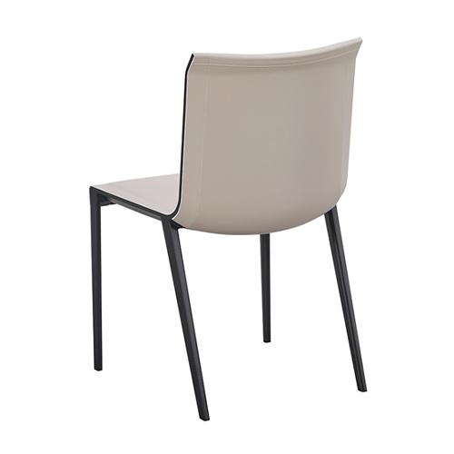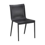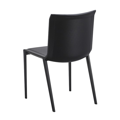 Contemporary indoor chair featuring a sleek black metal frame paired with a smooth vinyl seat and back for a clean, modern look. The fully upholstered surfaces provide comfortable support, while the slim metal legs create a light, streamlined profile ideal for restaurants, cafés, and other commercial interiors. Designed for durability and easy maintenance, this chair is available in both cream and black vinyl options to suit a variety of décor styles. Furnishings a restaurant is what ARTeFAC specializes from year 2004.