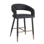 Comfort and style come together to make a statement in your space. This modern counter height stool features a curved high back to offer support for hours hanging on a restaurant island. The neutral beige faux leather and black metal base combination is fabulously finished with an aged gold accent that provides the perfect contemporary touch. Use as everyday seating in kitchens or more formal bar settings.
