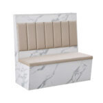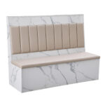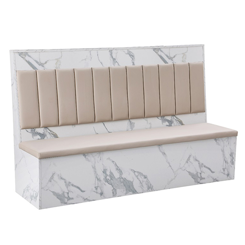 SE-LBS-46-26 Cream Vinyl Booth with Vertical Channel Back and Marble-Look Melamine Frame