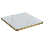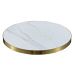 R-ST-31 Grey Veining Marble White Sintered Stone Table Top with Gold Stainless Steel Edge