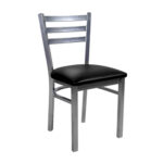 SE-137 Indoor 3 Slat Ladder Back Grey Metal Chair with Vinyl/Solid Wood and Veneer Seat