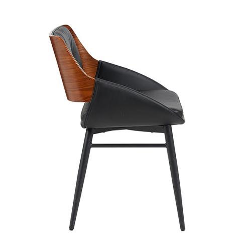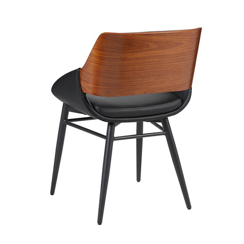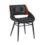 SE-490 Indoor Black Metal Armchair with Button-Tufted Upholstery and Walnut Veneer Outer Back
