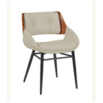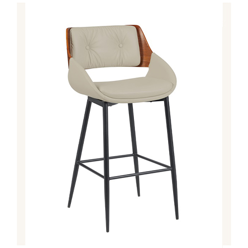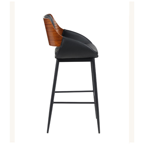 This indoor armchair combines contemporary comfort with refined detailing for restaurant and commercial interiors. It features a fully upholstered seat and button-tufted backrest that provide supportive and comfortable seating. The curved walnut veneer outer back adds warmth and visual contrast to the sleek black metal frame. A sturdy metal base ensures long-lasting durability in high-traffic environments. Available in both dining and bar heights, this armchair adapts easily to a wide range of restaurant layouts, bars, cafés, and hospitality spaces. Furnishings a restaurant is what ARTeFAC specializes from year 2004.