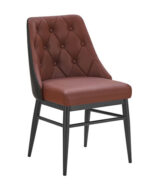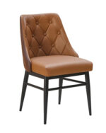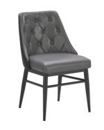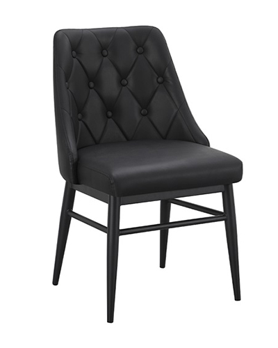 Enhance your dining area with this stylish indoor black metal chair, perfect for restaurants and commercial spaces. The diamond-tufted vinyl back and seat create a refined, comfortable seating experience for guests. Available in six attractive colors: Cream, Taupe, Brown, Dark Brown, Gray, Orange, Burgundy, and Black vinyl. Choose between dining height for casual seating or bar height for elevated counter spaces. The sturdy black metal frame ensures lasting durability and stability in high-traffic environments. Its versatile design complements modern, classic, or transitional interiors with ease. Perfect for both upscale dining venues and casual eateries. Furnishings a restaurant is what ARTeFAC specializes from year 2004.