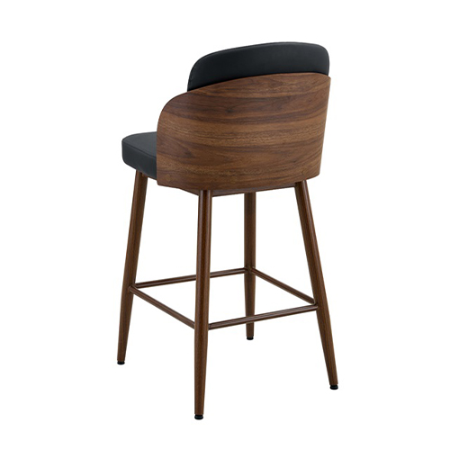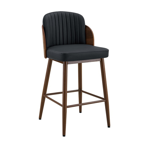 This Indoor Black Vinyl Chair with Vertical Stitched Back and Walnut Veneer Woodgrain Metal Frame offers a balanced blend of style, comfort, and durability for restaurants and other commercial spaces. First, the vertically stitched black vinyl back introduces subtle texture while also providing supportive seating. Additionally, the generously padded seat enhances comfort for extended dining or bar use. Meanwhile, the walnut veneer woodgrain metal frame delivers the warmth of wood combined with the strength and stability of metal, making it well suited for high-traffic environments. Furthermore, the sleek silhouette complements both modern and transitional interiors. Finally, with availability in both standard and bar height options, this versatile chair adapts effortlessly to dining rooms, bars, and hospitality settings seeking a refined and cohesive look. Furnishings a restaurant is what ARTeFAC specializes from year 2004.