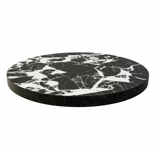 This table top brings a bold, modern look to any commercial space. It features striking white marble veining over a deep black background. The surface uses durable melamine, so it resists scratches and cleans easily. The edges stay crisp and smooth for a polished finish. It works well in restaurants, cafés, lounges, and hotel dining areas. You can choose from multiple shapes and sizes to fit any layout. Round and square options are both available. Pair it with a wide range of table bases for a customized look. This top offers the style of marble with the practicality of melamine. Furnishings a restaurant is what ARTeFAC specializes from year 2004.