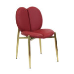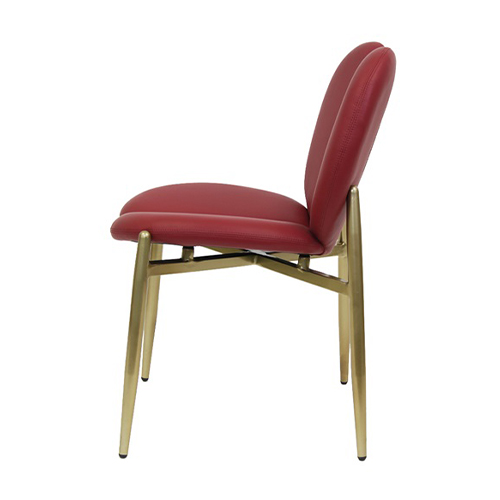 Home Restaurant Chairs Dining Chairs Indoor Burgundy Vinyl Chair with Heart-Shaped Back and Gold Metal Frame