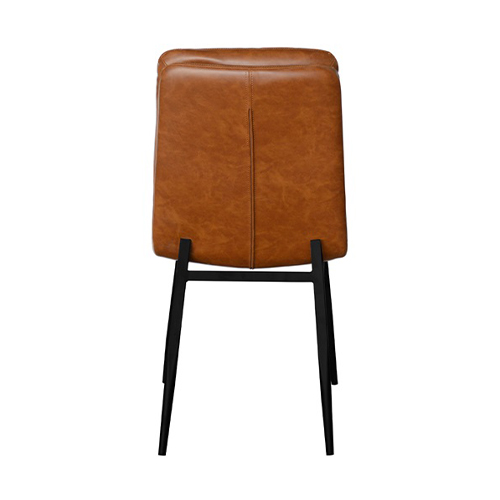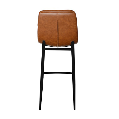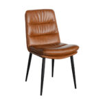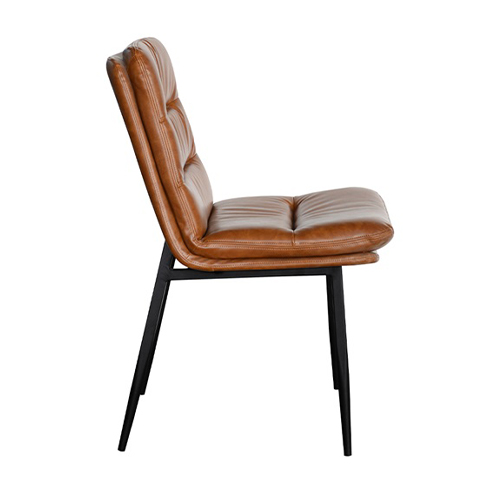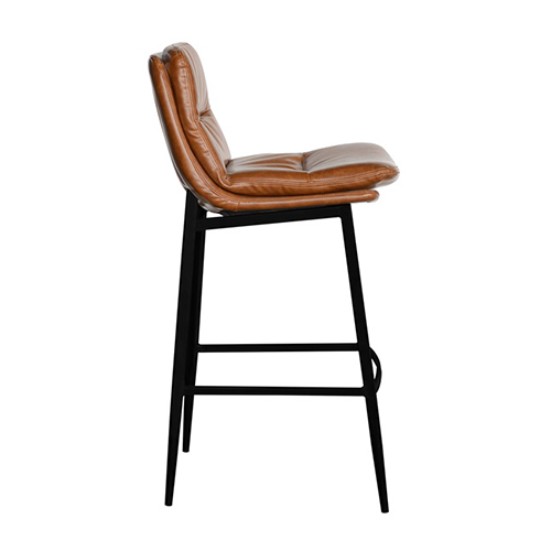 This indoor camel brown chair combines a padded vinyl seat and back with a sturdy black metal frame for a warm, modern look. The horizontal channel stitching adds texture and visual depth while also enhancing comfort and support. Its clean lines and slightly contoured form make it suitable for both casual and upscale dining environments. Available in standard and bar heights, it adapts easily to a range of restaurant layouts and seating needs. Built for commercial use, it offers durability, easy maintenance, and timeless style for busy hospitality spaces. Furnishings a restaurant is what ARTeFAC specializes from year 2004.