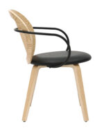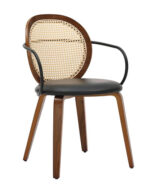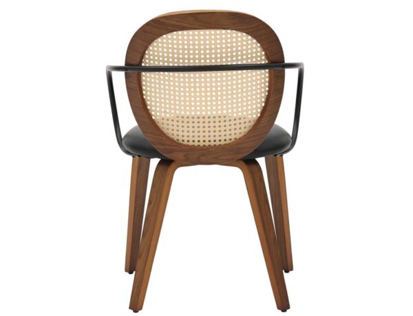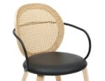 RW-202-660 Indoor Farmhouse Dining Solid Bentwood Armchair with Black Faux Leather Seat and Faux Rattan Backrest