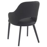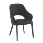 This indoor modern dining armchair features sleek matte black metal legs paired with a comfortably cushioned faux leather seat and a smoothly curved back that provides both ergonomic support and a refined contemporary look. Upholstered in durable, easy-to-maintain faux leather, it is available in Black and Taupe finishes to suit a wide range of interior palettes. Designed for commercial performance, this chair offers a balanced combination of comfort, durability, and style, making it an excellent seating solution for restaurants, cafés, and other high-traffic commercial spaces. Furnishings a restaurant is what ARTeFAC specializes from year 2004.