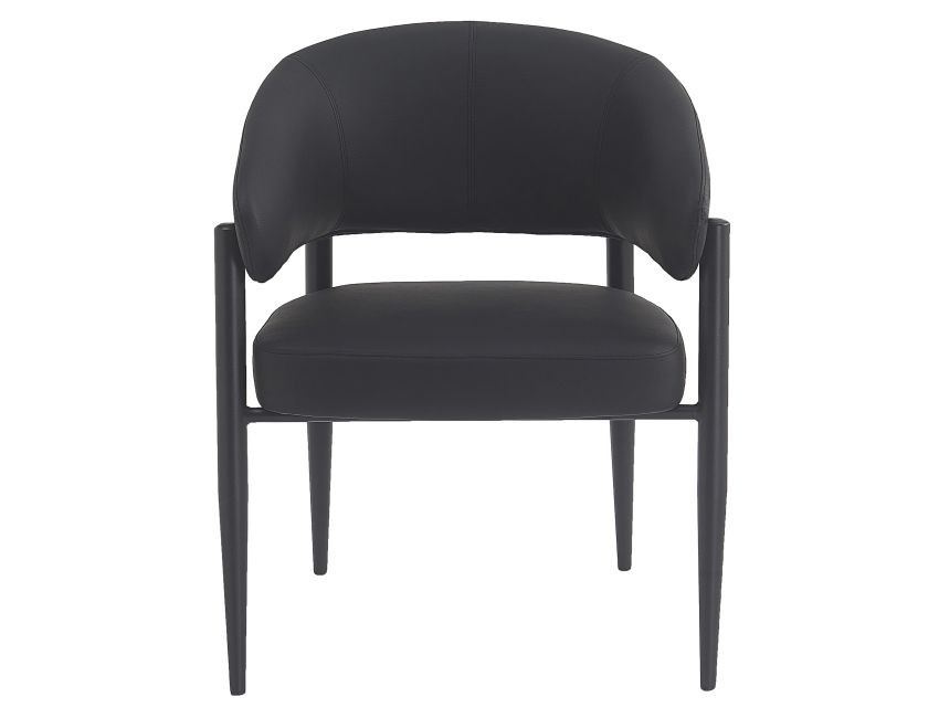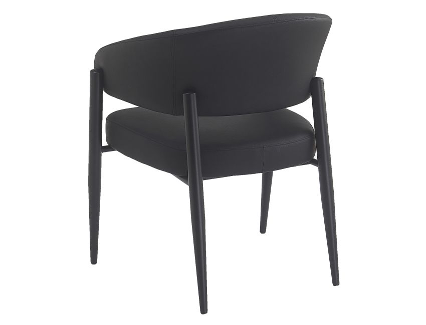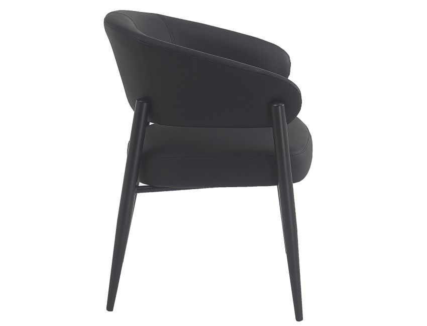 RW-202-063 Indoor Modern Matte Black Tapered Metal Legs Dining Chair with Faux Leather Thick Cushioning Seat and Curved Back