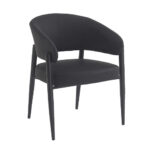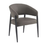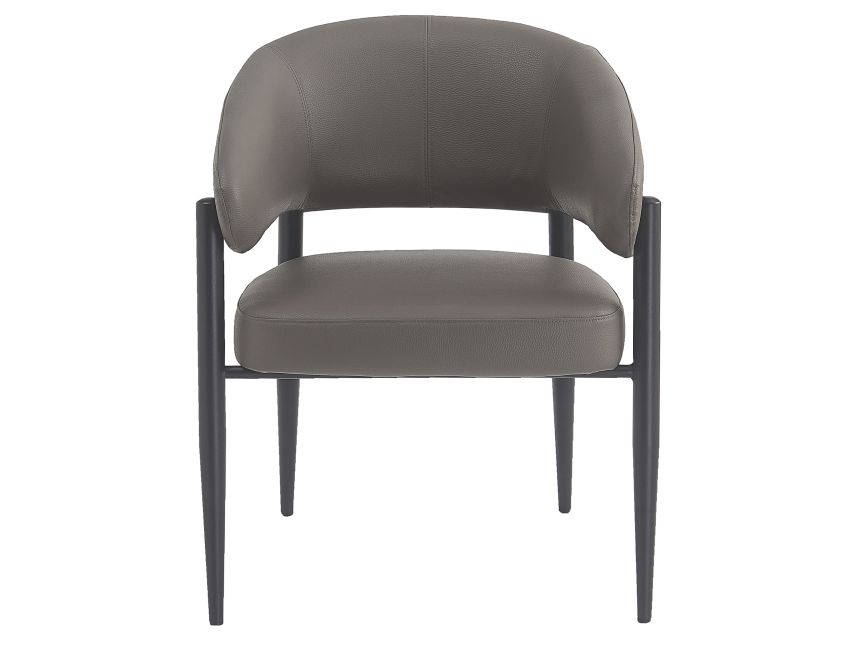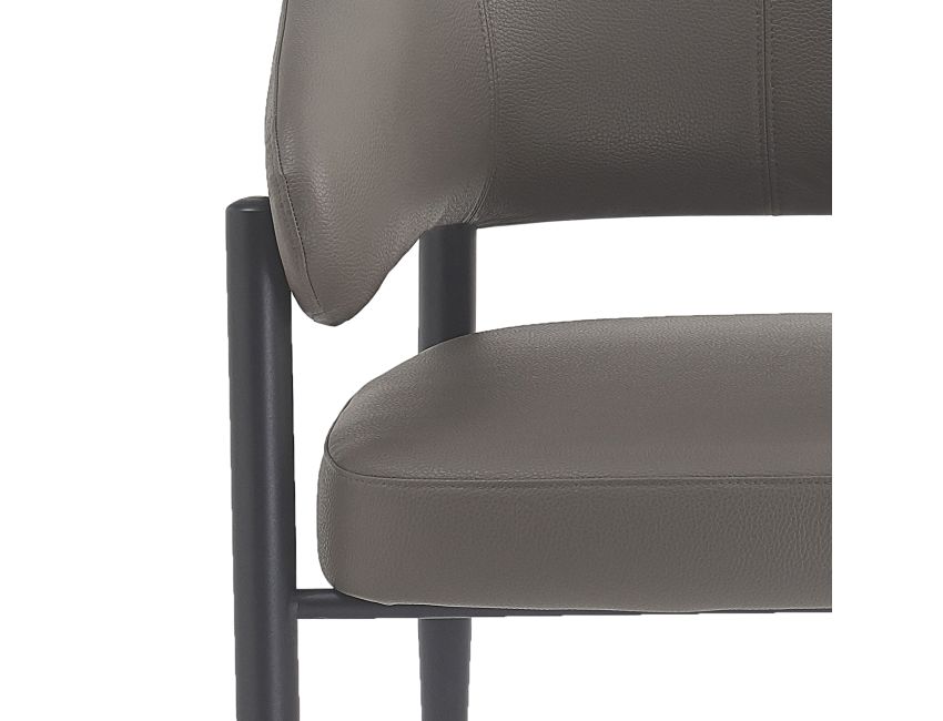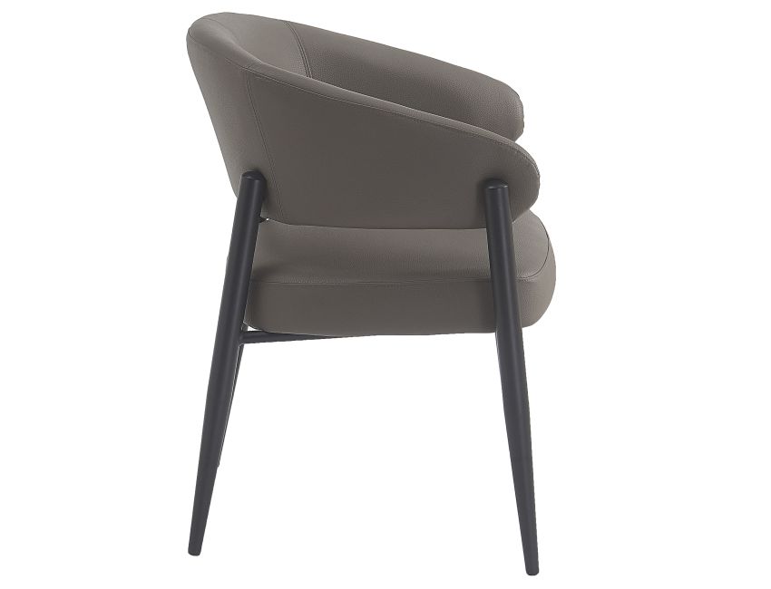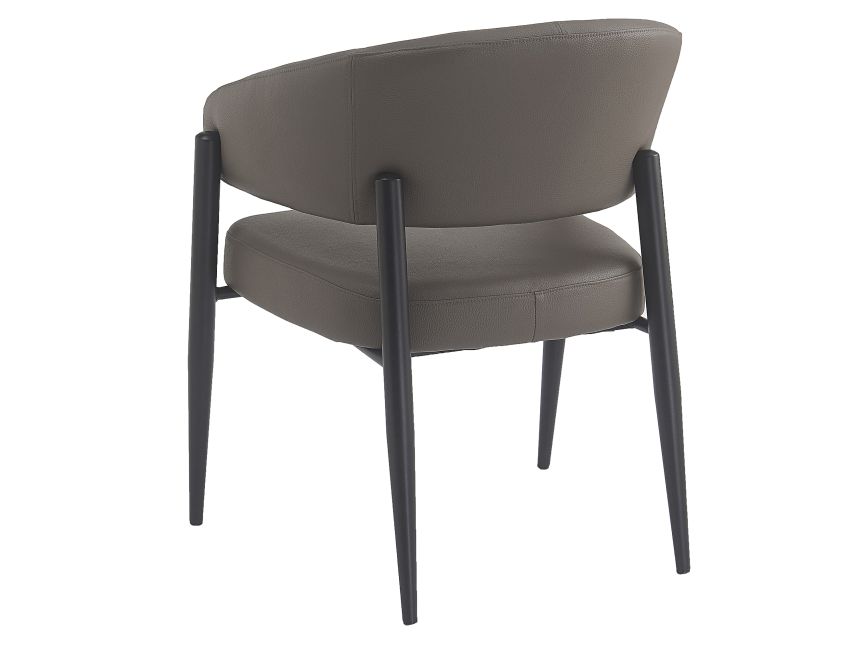 This indoor modern dining chair features matte black tapered metal legs paired with a thickly cushioned seat and a softly curved back, delivering a refined balance of comfort, durability, and contemporary style. Upholstered in high-quality faux leather, the generously padded seat and wraparound back provide excellent support for extended dining, making it ideal for busy restaurant environments and other commercial spaces. The clean silhouette and minimalist profile allow it to integrate seamlessly into modern, upscale, or casual interiors, while the sturdy metal frame ensures long-lasting performance under frequent use. Available in classic Black and versatile Taupe faux leather, this chair offers design flexibility and a polished aesthetic suitable for a wide range of hospitality settings. Furnishings a restaurant is what ARTeFAC specializes from year 2004.