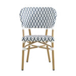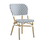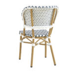 SE-A69 Indoor/Outdoor Bamboo-Style Aluminum Bistro Chair with Navy Blue and White Woven Seating