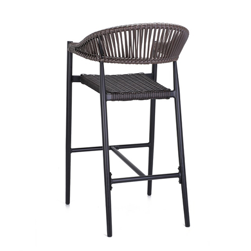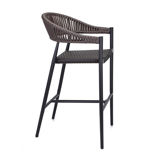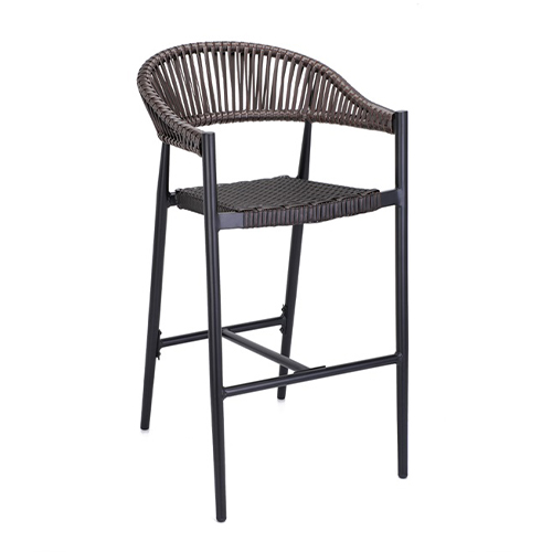 This indoor/outdoor armchair features a durable black aluminum frame paired with a dark brown woven seat and back, creating a refined yet resilient seating solution for commercial environments. Not only does the lightweight aluminum construction provide excellent corrosion resistance, but it also ensures long-lasting performance in both indoor dining areas and outdoor patios. Meanwhile, the tightly woven synthetic material offers supportive comfort while maintaining its shape and appearance over time. Additionally, the gently curved armrests and open-back design enhance ergonomic support and visual appeal. Furthermore, this chair is available in both standard and bar height options, allowing for seamless coordination across dining, bar, and lounge settings. As a result, it is an ideal choice for restaurants and other commercial spaces seeking a balance of style, comfort, and durability. Furnishings a restaurant is what ARTeFAC specializes from year 2004.