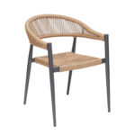 This Indoor/Outdoor Dark Gray Aluminum Armchair with Natural Terylene Fabric Seat and Back blends modern design with everyday durability, making it a smart choice for restaurants and other commercial spaces. To begin with, the lightweight yet sturdy dark gray aluminum frame offers excellent resistance to rust and weather, ensuring long-term performance both indoors and outdoors. At the same time, the natural terylene fabric seat and back provide breathable comfort while maintaining a clean, contemporary look. Moreover, the gently curved armrests enhance ergonomic support, allowing guests to sit comfortably for extended periods. In addition, the neutral color palette pairs effortlessly with a wide range of tables and design styles, from casual patios to refined dining areas. Finally, this armchair is designed for easy maintenance and daily commercial use, delivering a balance of style, comfort, and reliability in high-traffic environments. Furnishings a restaurant is what ARTeFAC specializes from year 2004.