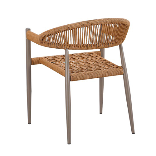 Indoor/Outdoor Metal Armchair with Natural Tan Terylene Weave features a sleek metal frame paired with a handwoven natural tan terylene seat and back for a warm, contemporary look. The gently contoured armrest design enhances comfort while maintaining a clean, modern silhouette suitable for high-traffic environments. Built for durability, this chair resists moisture, UV exposure, and daily commercial use, making it ideal for both indoor and outdoor settings. Available in standard dining height and bar height, this versatile armchair works perfectly in restaurants, cafés, patios, and hospitality spaces where style, strength, and comfort matter. Furnishings a restaurant is what ARTeFAC specializes from year 2004.