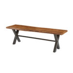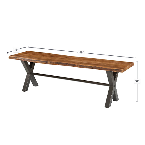 SL-RE-B Live Edge Solid Acacia Wood Bench with Heavy-Duty Black Iron X Base