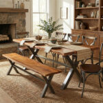 The Live Edge Solid Acacia Wood Bench combines natural craftsmanship with durable industrial design. It works well in restaurants, cafés, and other commercial hospitality spaces. The solid acacia wood seat features a natural live edge. As a result, each bench highlights unique grain patterns, knots, and organic character. In addition, the heavy-duty black iron X-shaped base provides excellent strength and stability. This sturdy metal frame also adds a bold industrial look. Because of its durable construction, the bench performs well in high-traffic commercial environments. It balances natural warmth with modern industrial style. The bench comes in 70″, 82″, and 98″ lengths. Therefore, it fits a variety of table sizes and seating layouts. This collection also includes matching dining tables, side tables, coffee tables, and consoles. As a result, designers can create a consistent furniture style across the space.