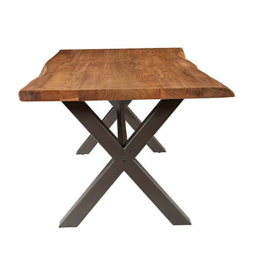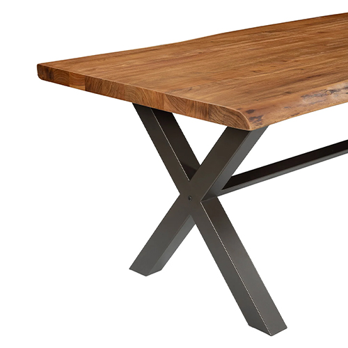 SL-RE Live Edge Solid Acacia Wood Table with Heavy-Duty Black Iron X Base