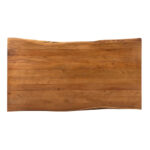 The Live Edge Solid Acacia Wood Table showcases natural craftsmanship and bold industrial design, making it a striking centerpiece for restaurants, cafés, and other commercial dining environments. The solid acacia wood tabletop features a distinctive live edge that highlights natural grain patterns, knots, and organic character, ensuring every piece has a unique appearance. A heavy-duty black iron X-shaped base supports the tabletop and provides exceptional strength and stability. The table is available in 70″, 82″, and 98″ lengths, offering flexibility for different dining layouts and seating capacities. This design is also offered in multiple formats, including dining table, side table, coffee table, console, and bench. These options allow designers and restaurateurs to create a cohesive furniture concept across various areas of their space.