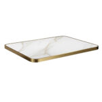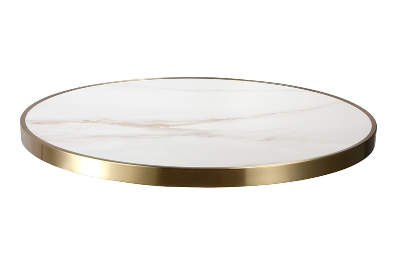SE-33 Marble White Sintered Stone Table Top with Veining and Gold Stainless Steel Edge