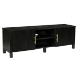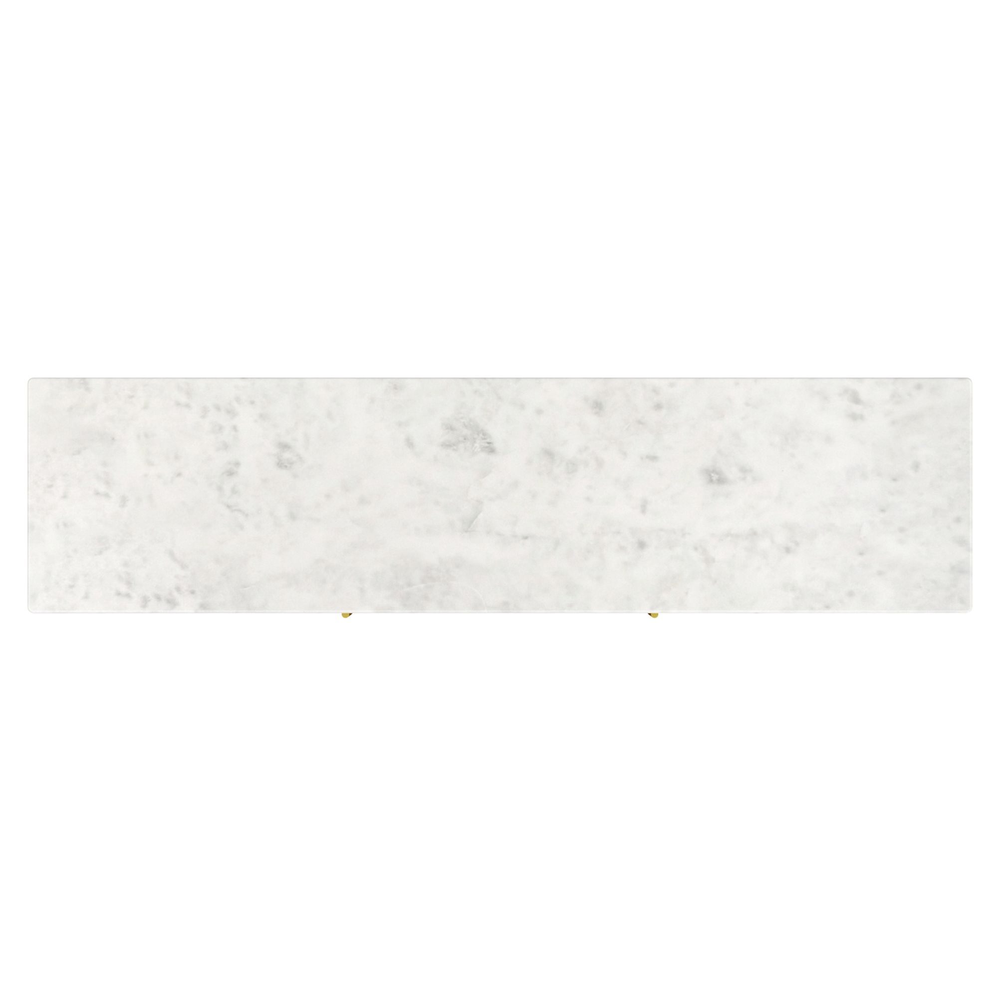 Add warmth and sophistication to any commercial setting with this modern media console. The piece is crafted from solid mango wood and finished in a rich rustic walnut tone. A smooth white marble top elevates the design and offers a refined contrast to the wood’s natural texture. Two side cabinets provide concealed storage, while the open center shelves keep media devices accessible and organized. The streamlined form, clean vertical paneling, and brass-finished hardware create a modern yet timeless look. This console works well in restaurants, lounges, hotel suites, and other public spaces that require both style and durability. Also available in a Black Finish with a Black Marble Top, offering a bold and contemporary alternative.