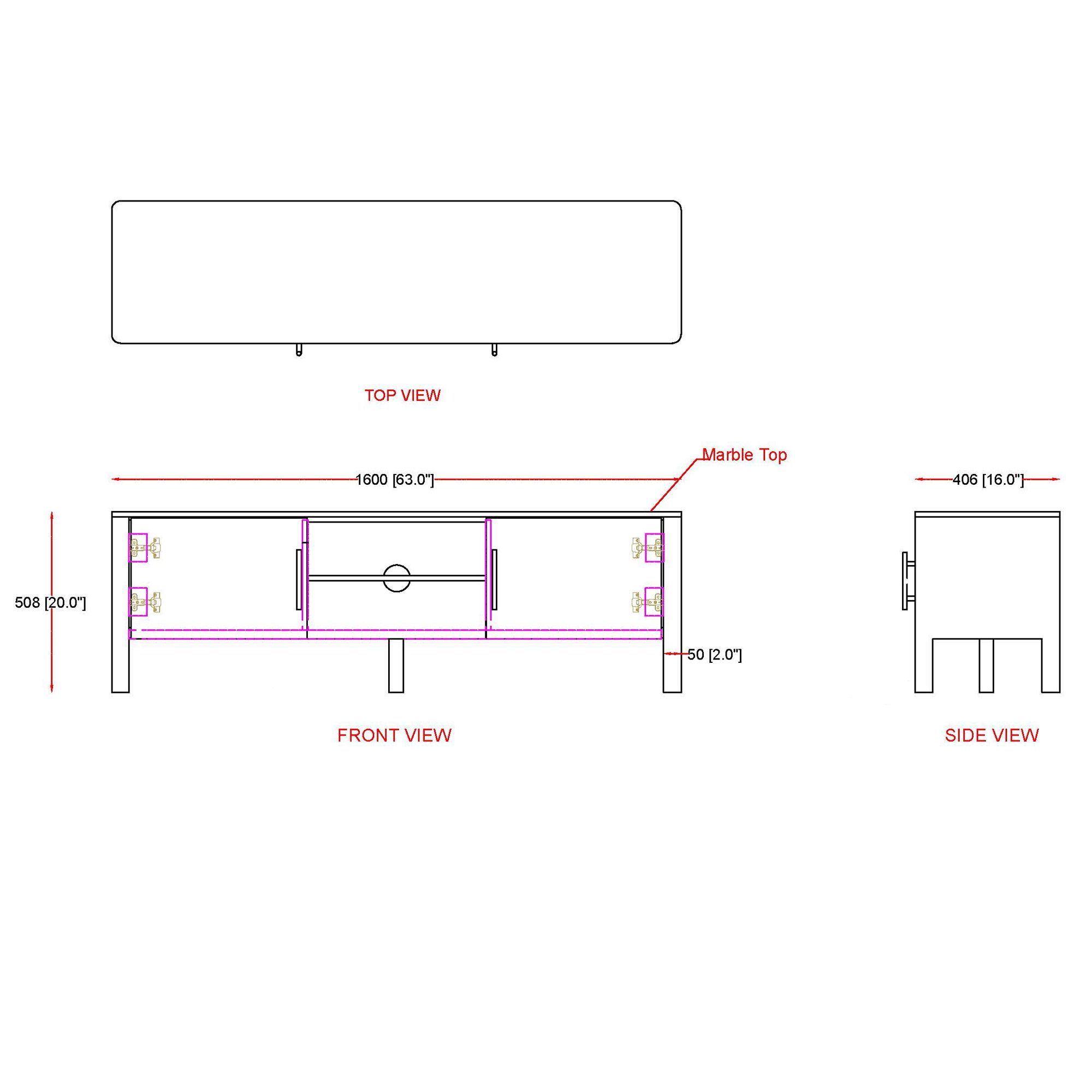 RW-506-844 Modern Media Console in Solid Mango Wood with Rustic Walnut Finish and White Marble Top