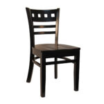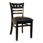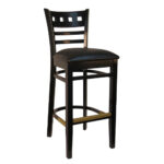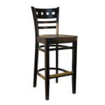 R-1703 Restaurant Bar Stool with Black Seat and Frame w/Dark Walnut Panel