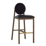 Bring modern elegance and durability to your dining or bar area with this Solid Oak Wood Frame Barstool, featuring a sleek design crafted for both style and function. The stool is fitted with a black faux leather upholstered seat and round backrest, providing exceptional comfort and easy maintenance for high-traffic environments. Its sturdy oak wood frame adds natural warmth, complemented by a brushed brass footrest for a touch of sophistication and additional support. Perfectly suited for restaurants, bars, cafés, and other commercial spaces, this barstool combines a refined look with long-lasting performance. Furnishings a restaurant is what ARTeFAC specializes from year 2004.