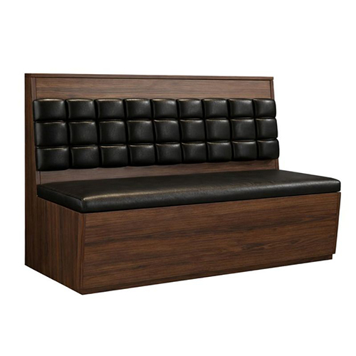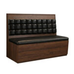 SE-VBS-42-4 Square-Tufted Black Vinyl Restaurant Booth with Walnut Veneer Frame
