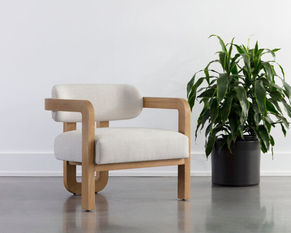 SR-111583 Contemporary Tan Leather Armchair with Dark Brown Solid Oak Frame and Three-Legged Design