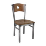 SE-163C Veneer Circle Hole Punch Back Clear Coat Metal Chair with Vinyl/Solid Wood and Veneer Seat