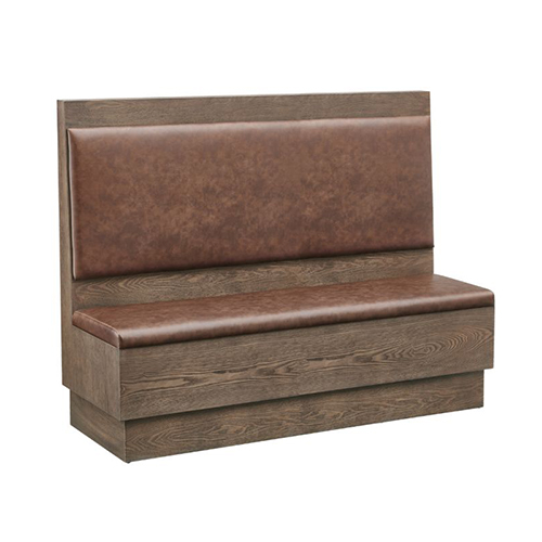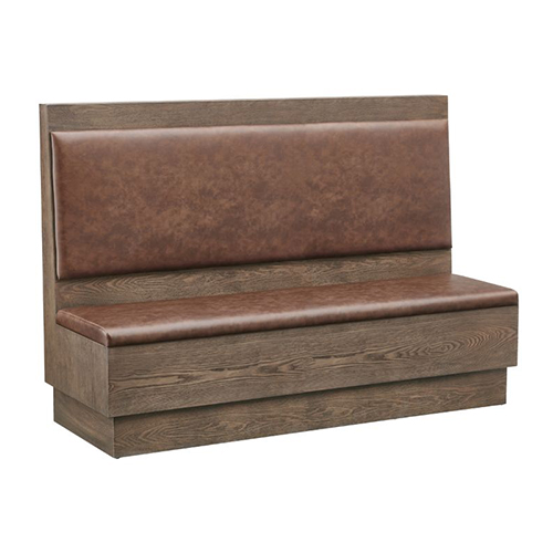 This walnut veneer frame booth offers a warm, inviting look with its rich brown vinyl upholstered seat and back. The clean lines and simple silhouette make it a versatile choice for a wide range of restaurant interiors, from casual dining to more refined spaces. Built for commercial durability, it provides comfortable seating and a sturdy structure suited to high-traffic environments. Available in 48″, 60″, and 72″ lengths, along with a double-seat option, it allows flexible layout planning for restaurants and other commercial spaces.