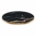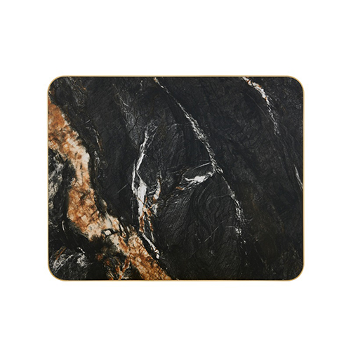 SE-45 White and Brown Veining Black Sintered Stone Table Top with Gold Aluminum Alloy Edge